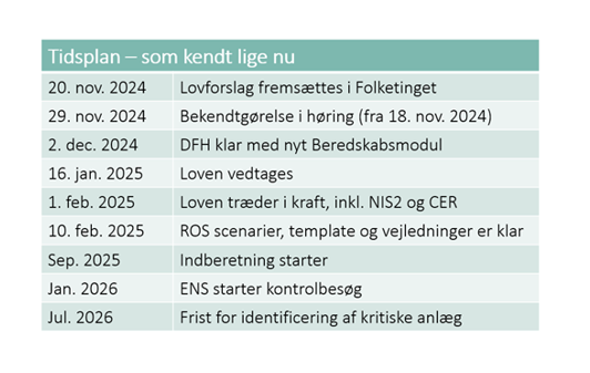”Lov om styrket beredskab” vil træde i kraft fra 1. februar 2025. Og første indberetning af beredskabsplaner bliver 1. september 2025.