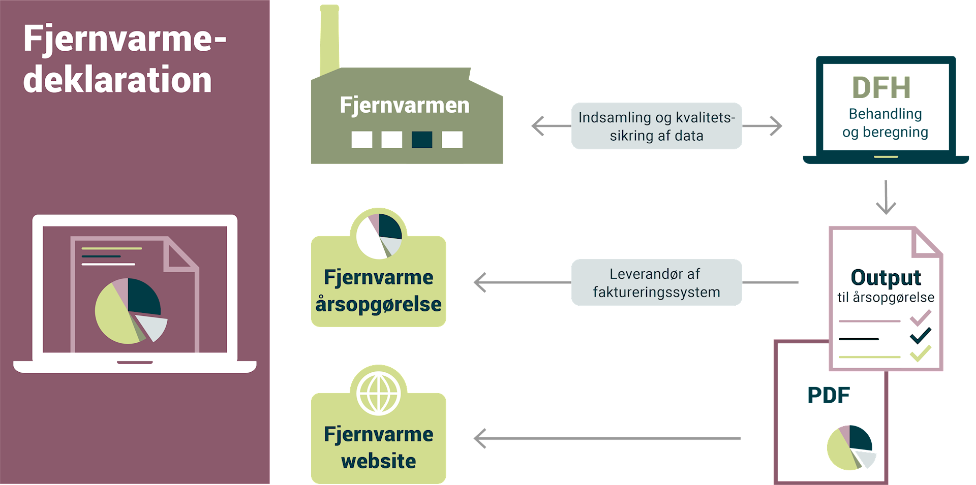 Se et eksempel på en fjernvarmedeklarationens opbygning i DFH til højre på denne side.